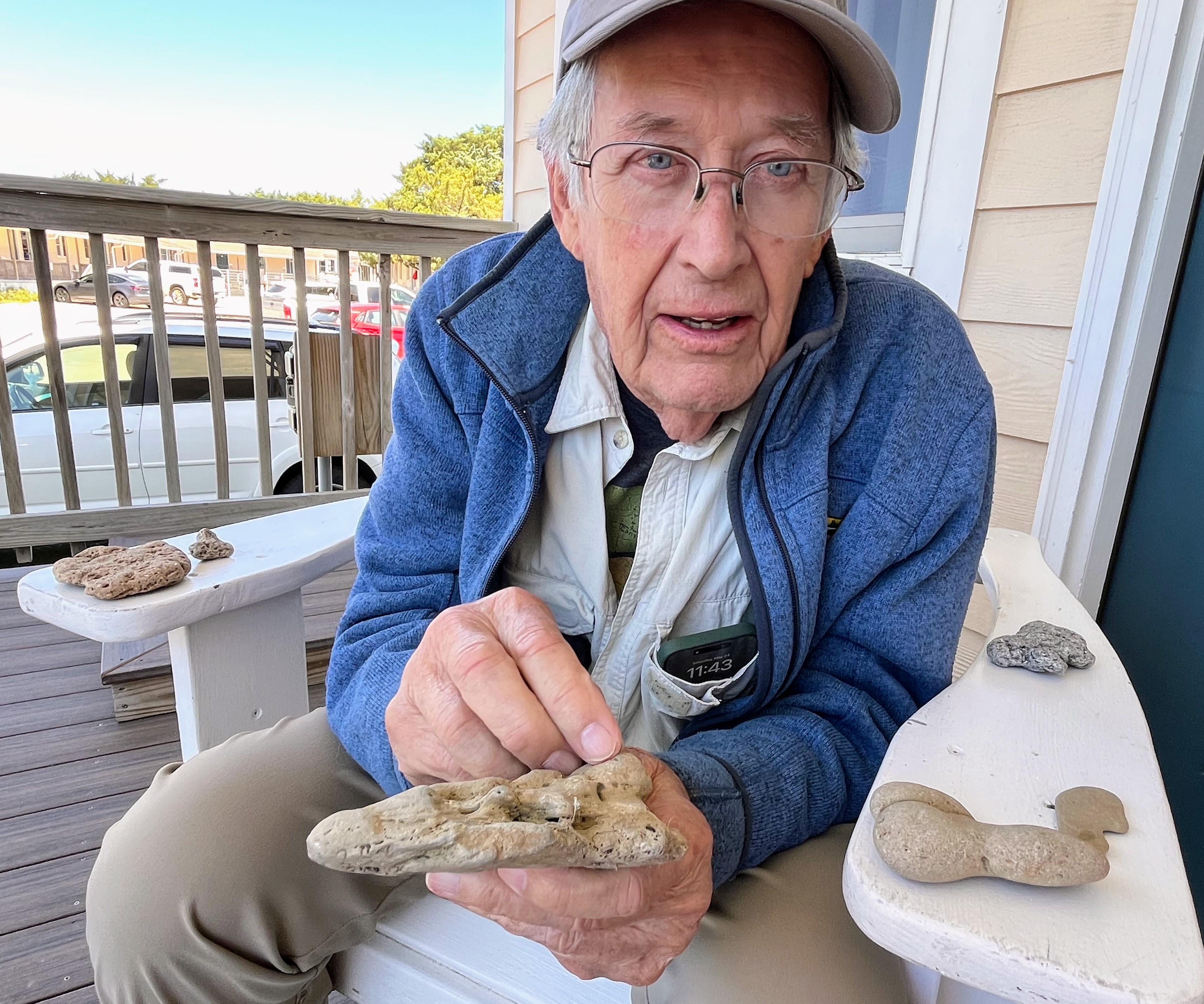 Gretchen Miller, a senior professor of geology at Wake Tech Community College, Raleigh, also looked at the specimens while visiting Ocracoke in the spring.