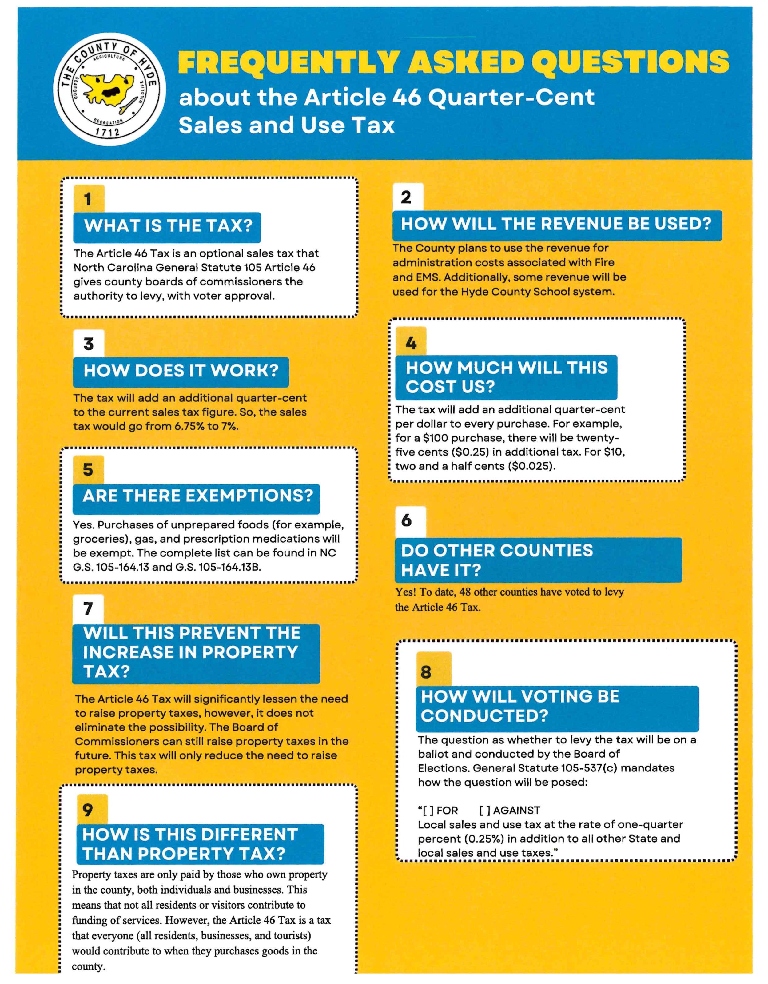 But this year, Hyde joins five other counties, Gates, Granville, Henderson, Martin, and Wayne, in placing a local sales tax referendum on the March primary ballot.